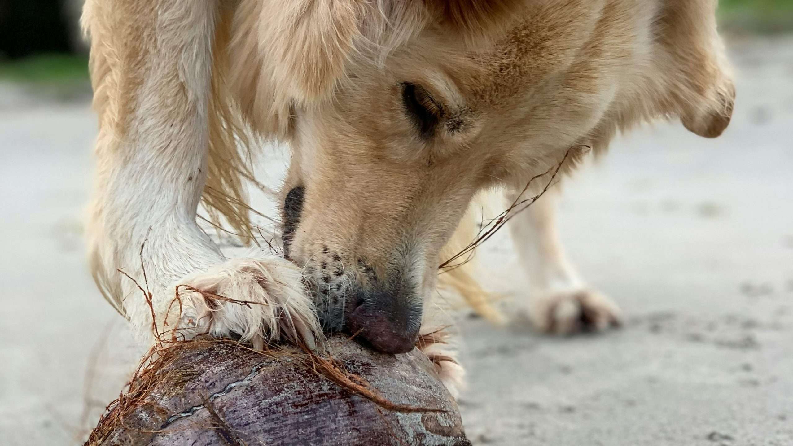 Never give dogs coconut shells. They’re hard, sharp, and can cause intestinal blockages or damage if swallowed.